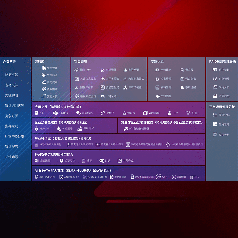 医疗器械产品上市前,,,,要熟悉严格与繁复评审标准,,整理分析监管机构指导文件中的海量信息。。。。企业急需一个智能化解决方案,,,,提升知识管理效率,,,,提高评审通过率,,,以提升其市场竞争力。。